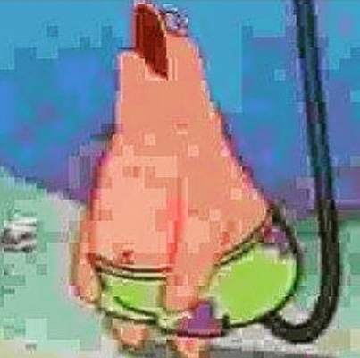 >:Patrick sitting on a hook